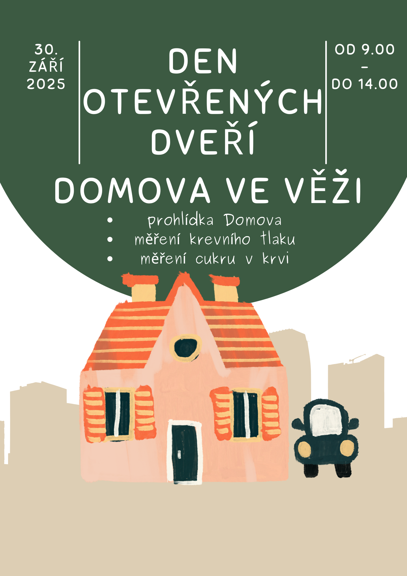 Zveme Vás na DEN OTEVŘENÝCH DVEŘÍ V DOMOVĚ VE VĚŽI, který proběhne dne 30. září 2025 od 9. do 14. hodin.