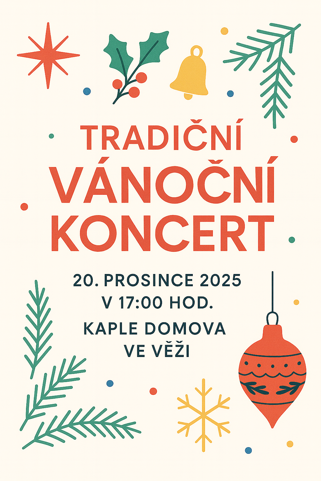 Zveme Vás na Tradiční vánoční koncert, který se koná 20. prosince 2025 v 17:00 hodin v kapli Domova ve Věži.